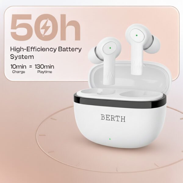Berth X35 offers up to 50 hours of total playtime, ensuring you stay connected without the need for frequent charging. Whether you’re traveling, working long hours, or simply enjoying your favorite music, this extended battery life gives you the freedom to go longer without interruptions—perfect for busy, on-the-go lifestyles