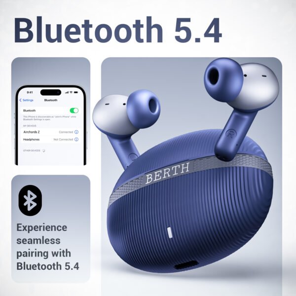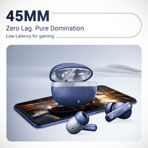 BERTH Newly Launched VE 250 Over The Ear ENC Headphone with 40mm Drivers, 36H of Playtime, ENC, Gaming Latency (50ms Latency), AI Voice Assistance, Volume Control, BT 5.4 Midnight Black
